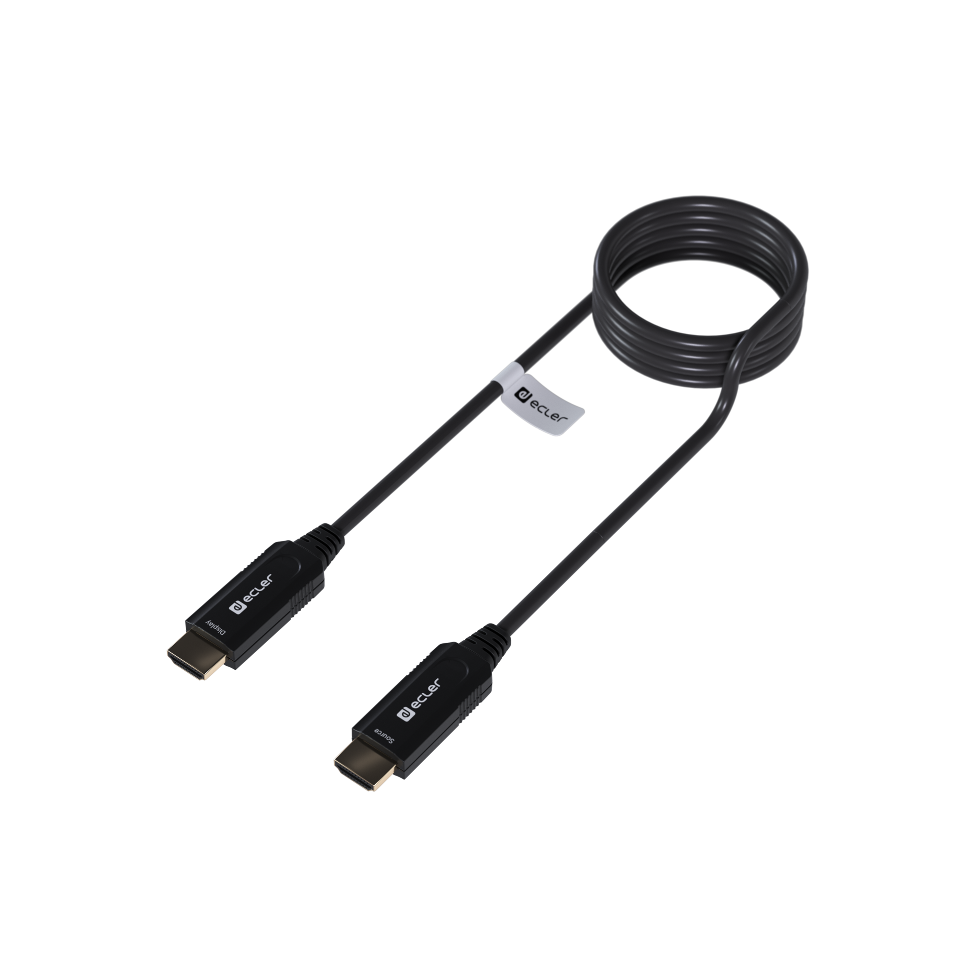 De Ecler VEO-XCH415 is een professionele HDMI® 2.1 Active Optical Cable (AOC) van 15 meter, ontworpen voor hoogwaardige AV-installaties. Deze hybride kabel combineert glasvezel en koper, waardoor hij een stabiele en storingsvrije unidirectionele HDMI®-verbinding biedt met een bandbreedte tot 48 Gbps. Hierdoor ondersteunt hij resoluties tot 8K bij 60Hz (4:4:4), 48-bit Deep Colour en HDR-content, wat resulteert in een haarscherpe beeldkwaliteit.