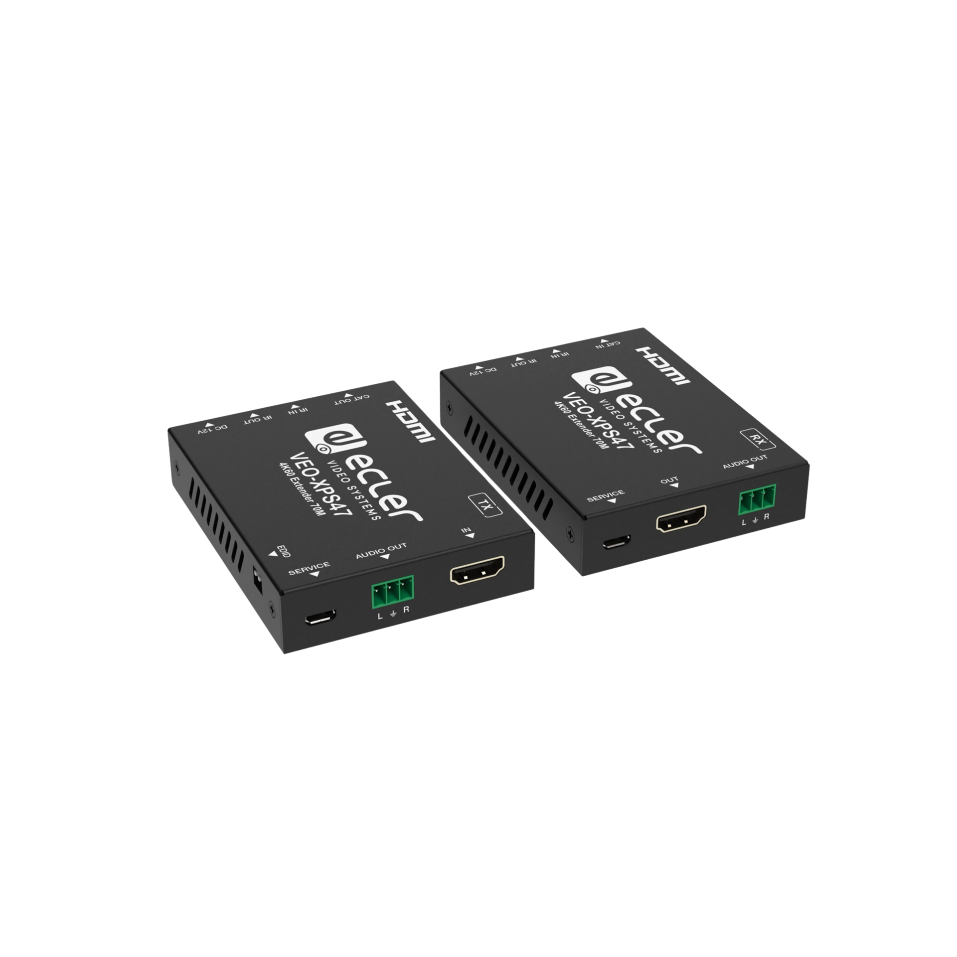 VEO-XPS47 is een HDMI® 18Gbps extenderkit waarmee 4K 50Hz 4:4:4 videosignalen tot 70 meter zonder vertraging kunnen worden verlengd via één enkele Cat 5e- of hogere kabel.