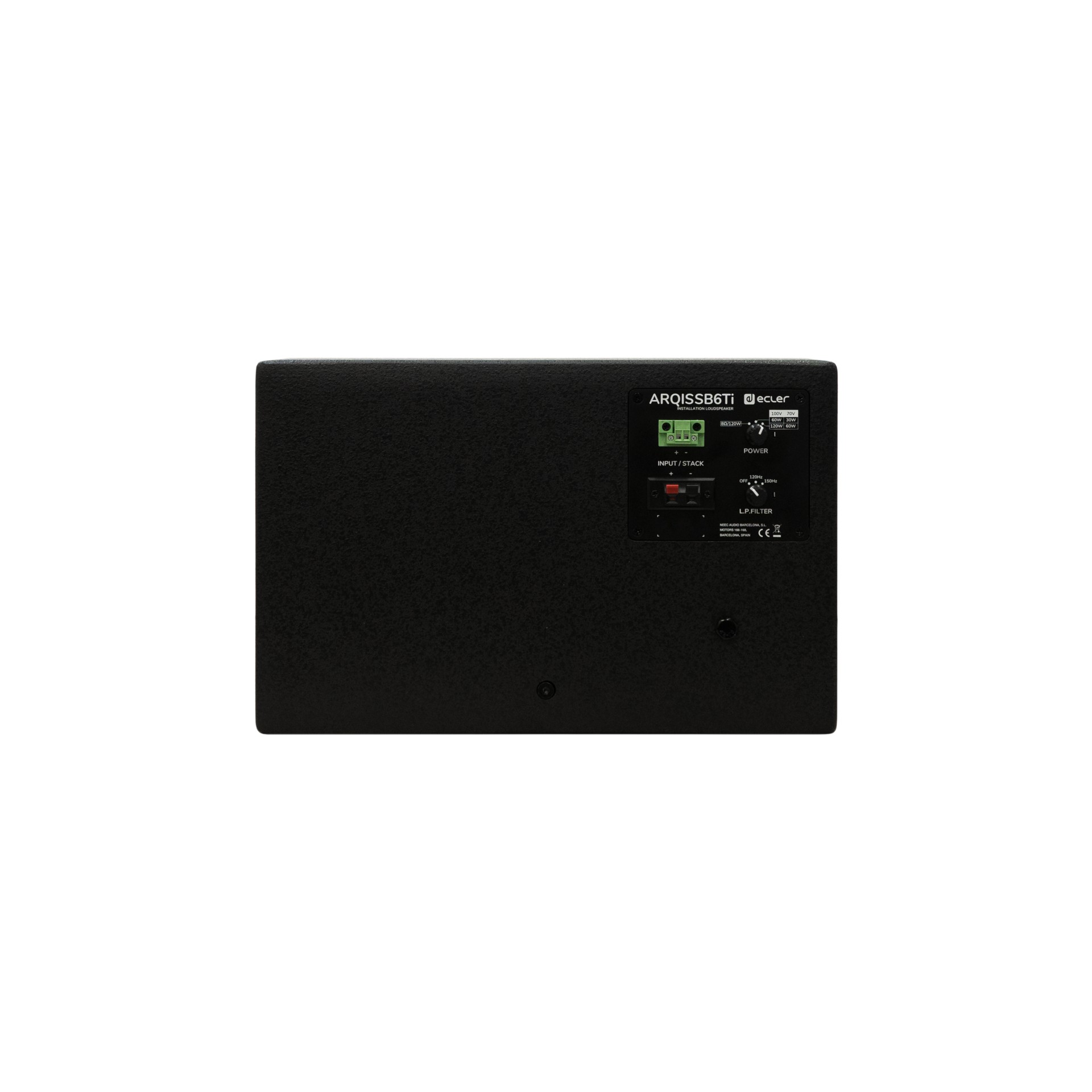 Deze compacte subwoofer geeft een krachtige weergave van de lage tonen en vormt hiermee een goede aanvulling voor de kleinere Ecler luidsprekers. Tevens is deze subwoofer geschikt voor 100V-installaties door de rechtstreekste 100V aansluiting en het aanwezige low pass filter. De ARQIS SB6Ti wordt geleverd inclusief montage beugel voor wand- of plafond montage.